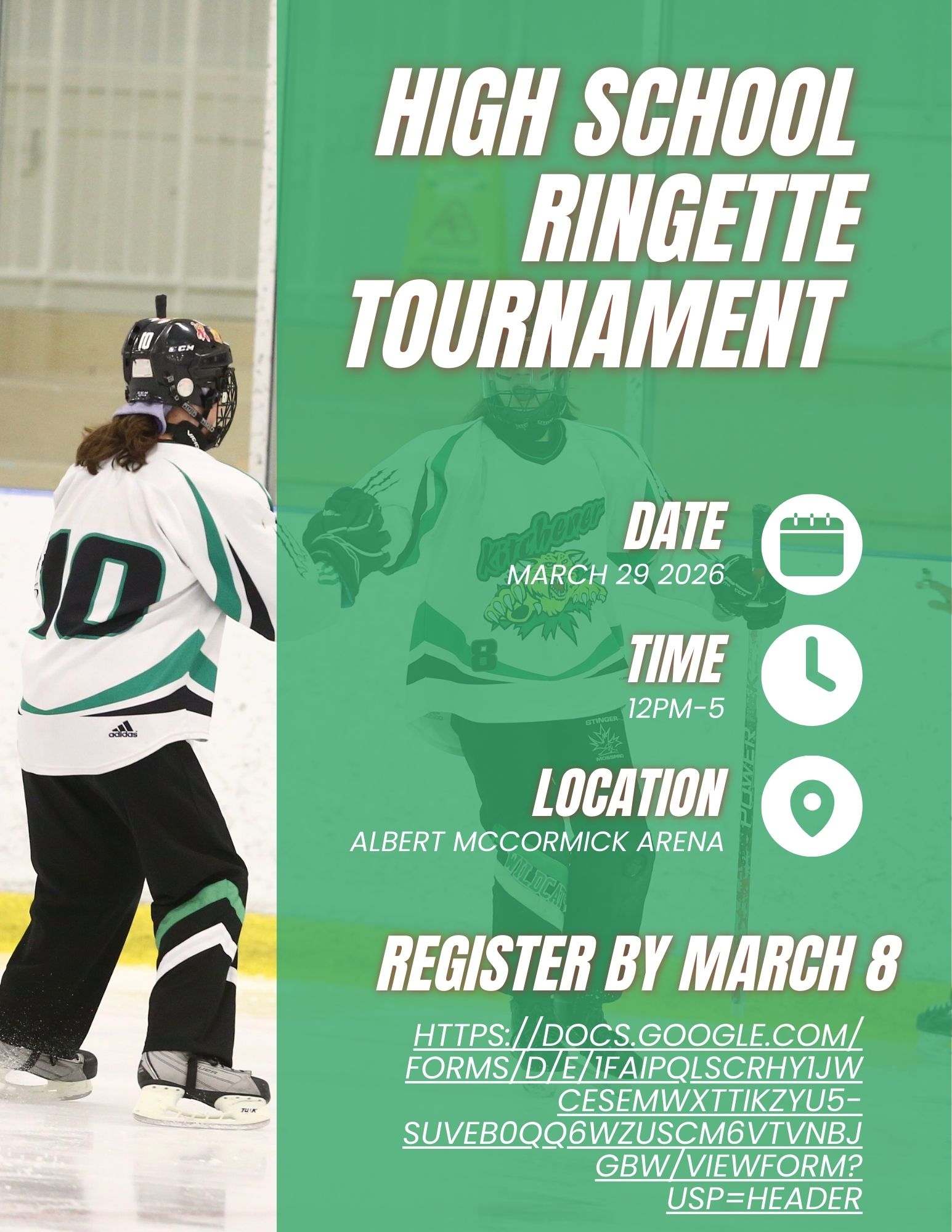 Back by popular demand the High School Ringette Tournament! Register by March 8th